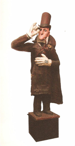 Following his own recipe for formal precision with a dash of irreverence, Girondo announced his next collection of poems, Espantapájaros (al alcance de todos) (1932) – the title of which echoes and reinforces the democratization of the poetic form seen in his earlier works – with a tremendous publicity spectacle. The poet rented a funeral carriage drawn by six horses, upon which he set his larger-than-life bourgeois “scarecrow,” announcing the availability of the volume in bookstores. The entire print run sold out within a month. The collection, comprised of 24 prose poems or surrealist vignettes, is introduced by a calligram of the same figure, the head of which is formed by the schoolroom chant of verb conjugation, with a difference:
